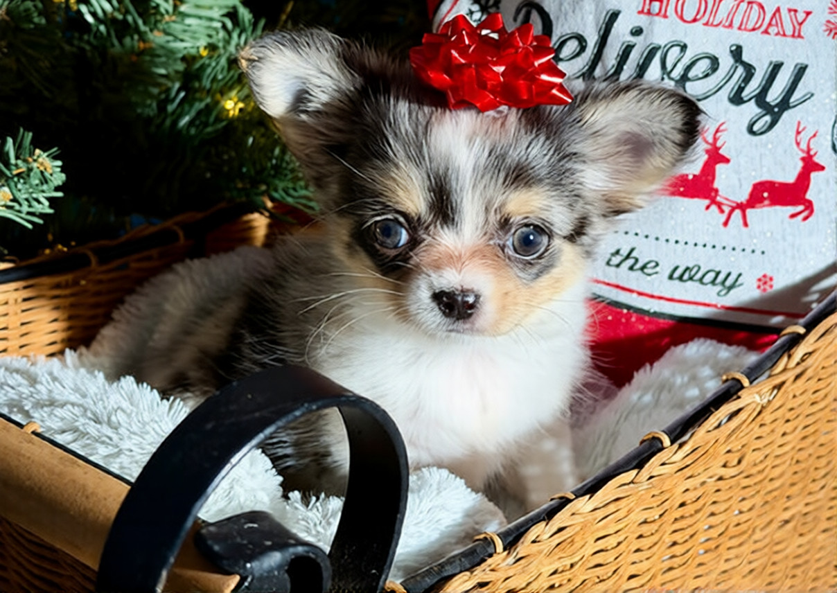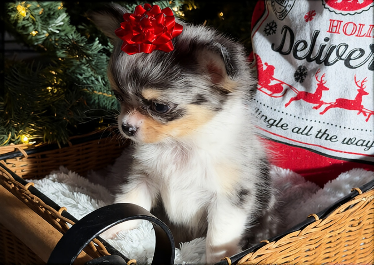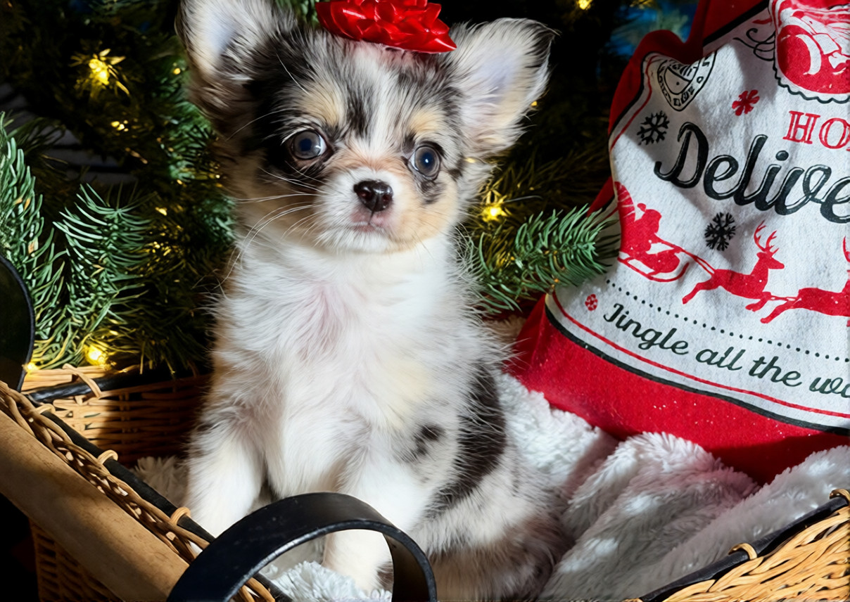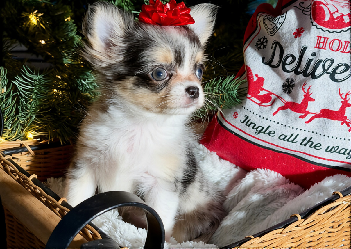 Meet Linny, a tiny bundle of joy with a heart twice the size of her paws! Linny is everything you love about Chihuahuas: loyal, spirited, and perfectly pocket-sized. Whether she’s curling up for a cozy nap in your lap or greeting you with her famous “wiggle-tail” dance, she has a magical way of making every day feel a little brighter. She isn’t just a puppy; she’s a lifelong best friend waiting to fill your home with love and laughter. One look into those big, soulful eyes and you’ll know-Linny is the piece your family has been missing.